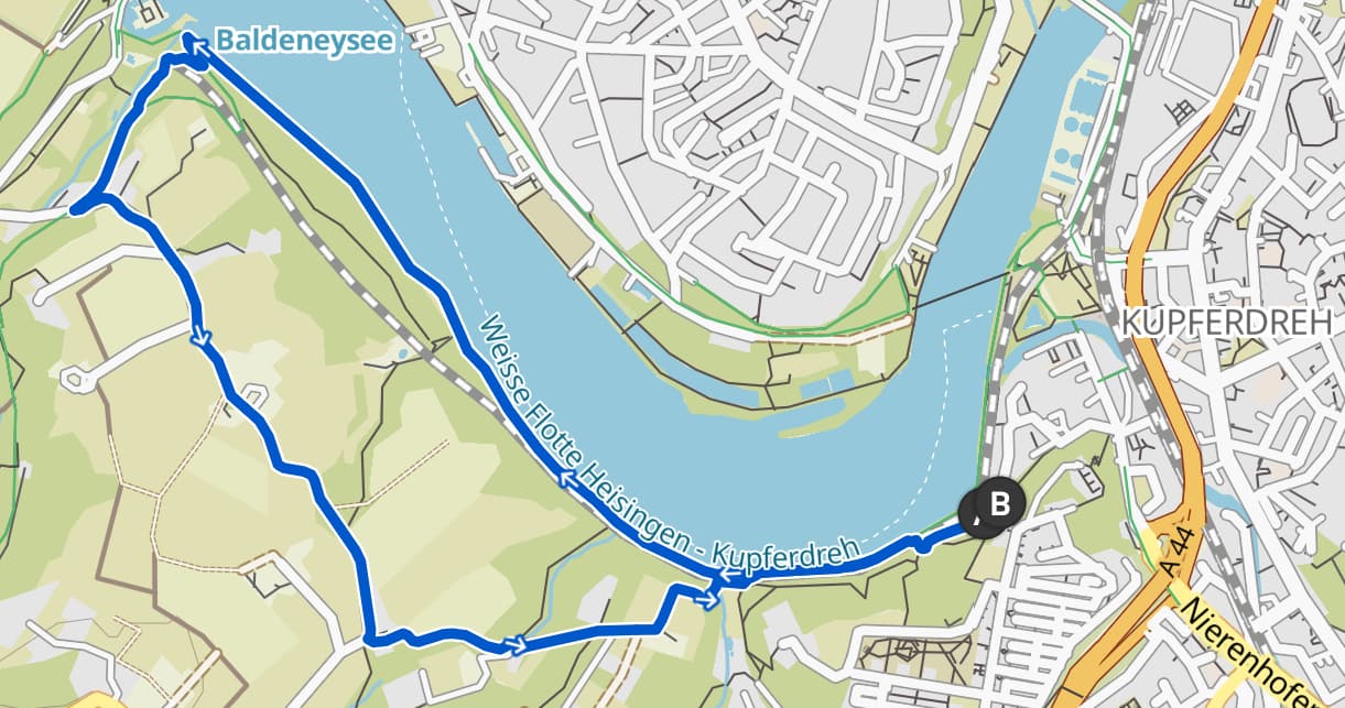 Link zur Route des Spaziergangs am Baldeneysee in Essen auf komoot