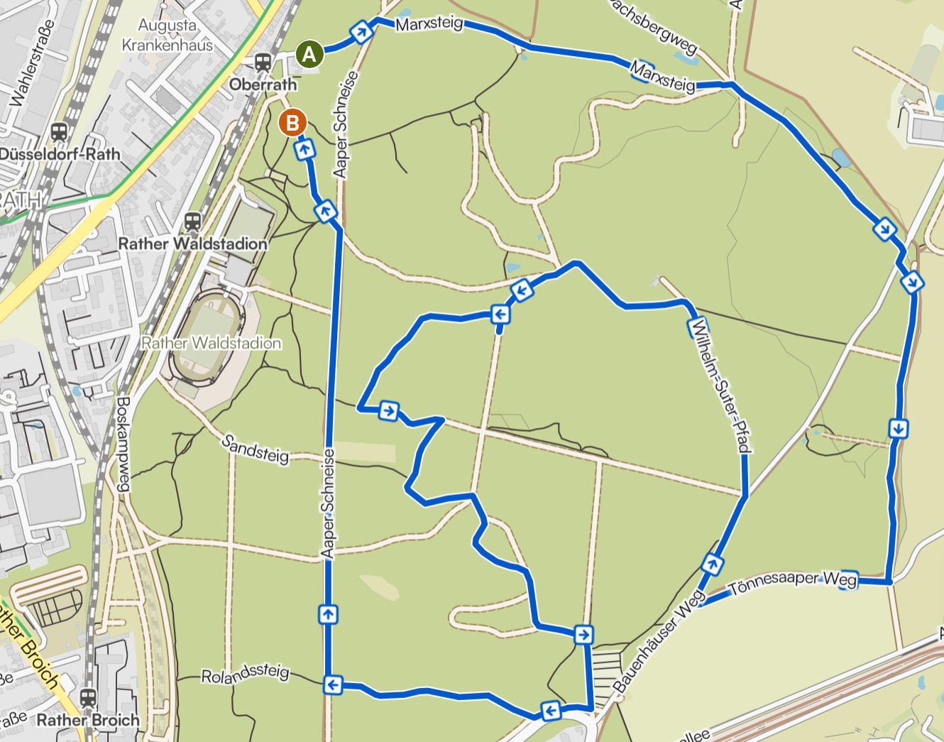 Link zur Route des Spaziergangs im Aaper Wald in Düsseldorf auf komoot