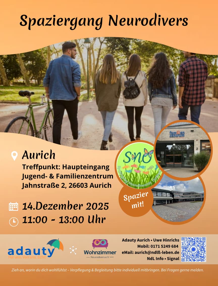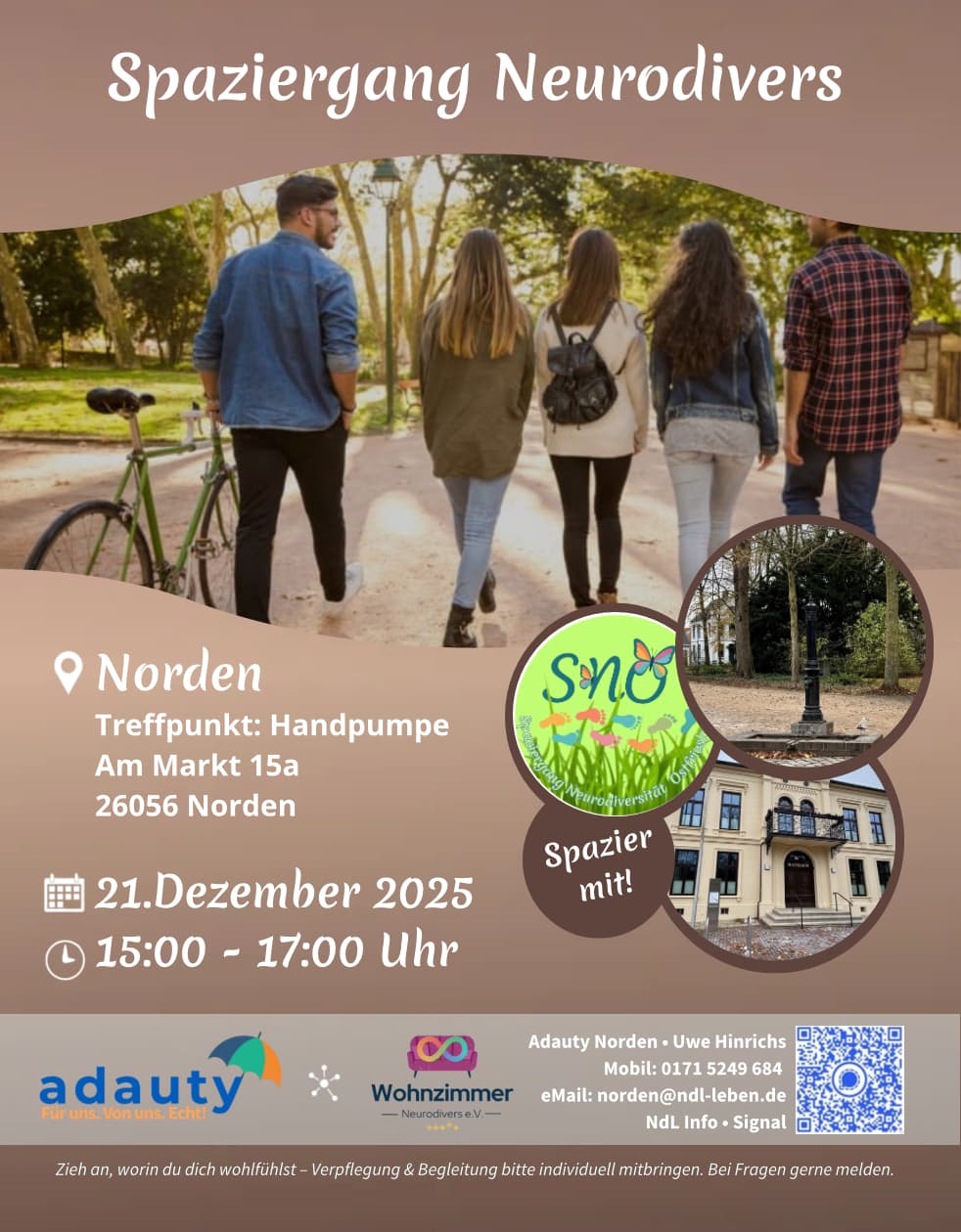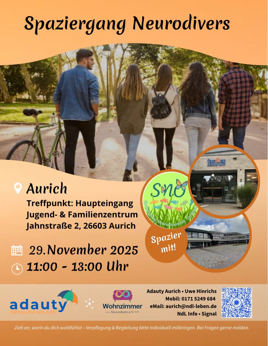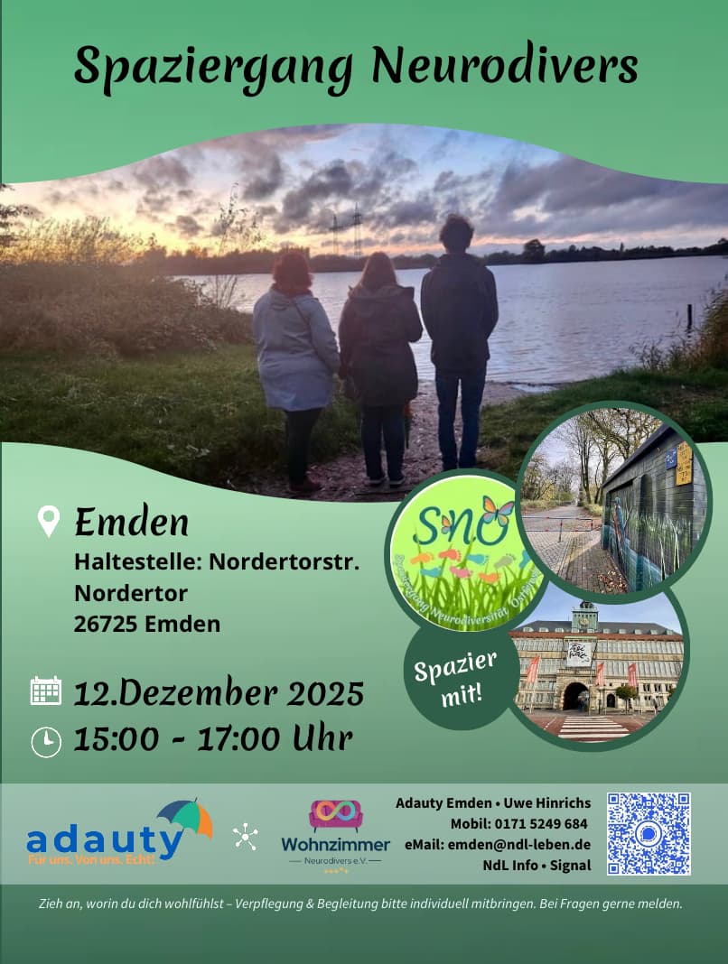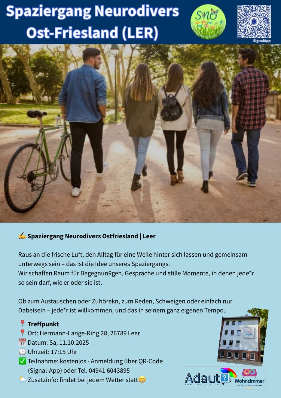 Der „Spaziergang Neurodivers“ lädt Menschen in Ostfriesland dazu ein, sich in entspannter Atmosphäre auszutauschen, Verbundenheit zu erleben und Gemeinschaft zu spüren.