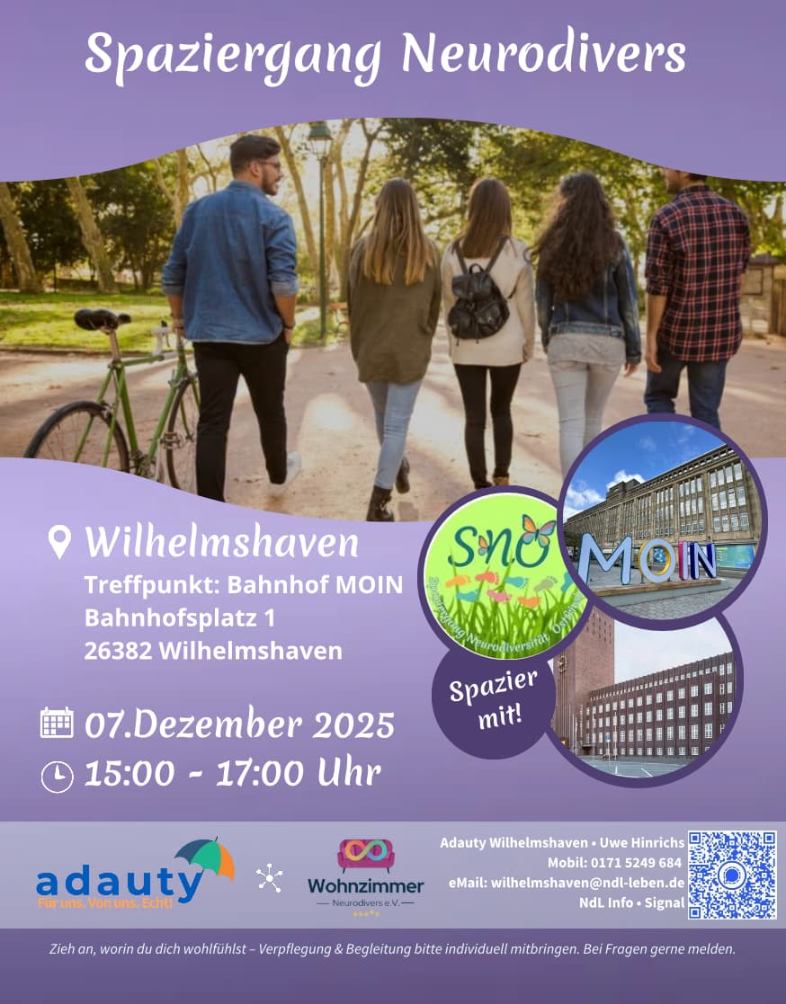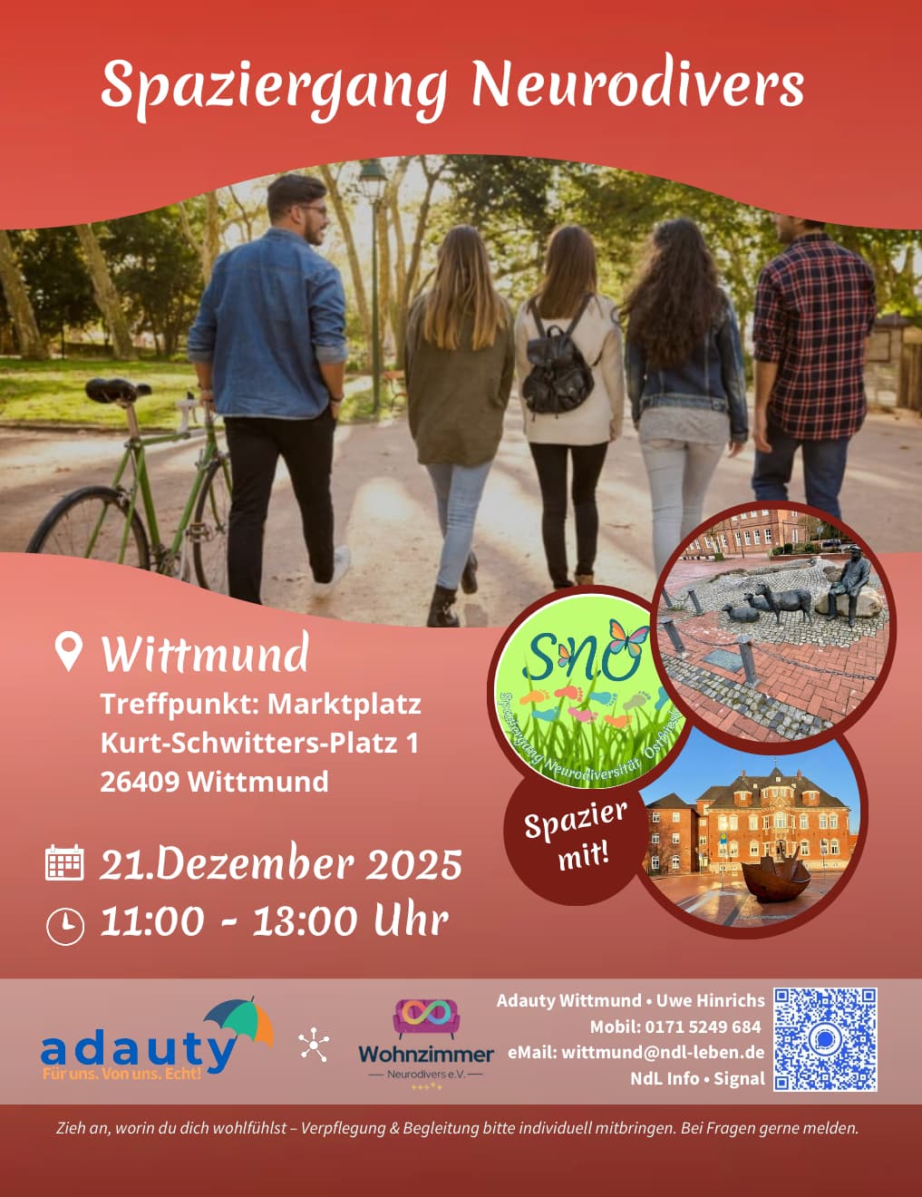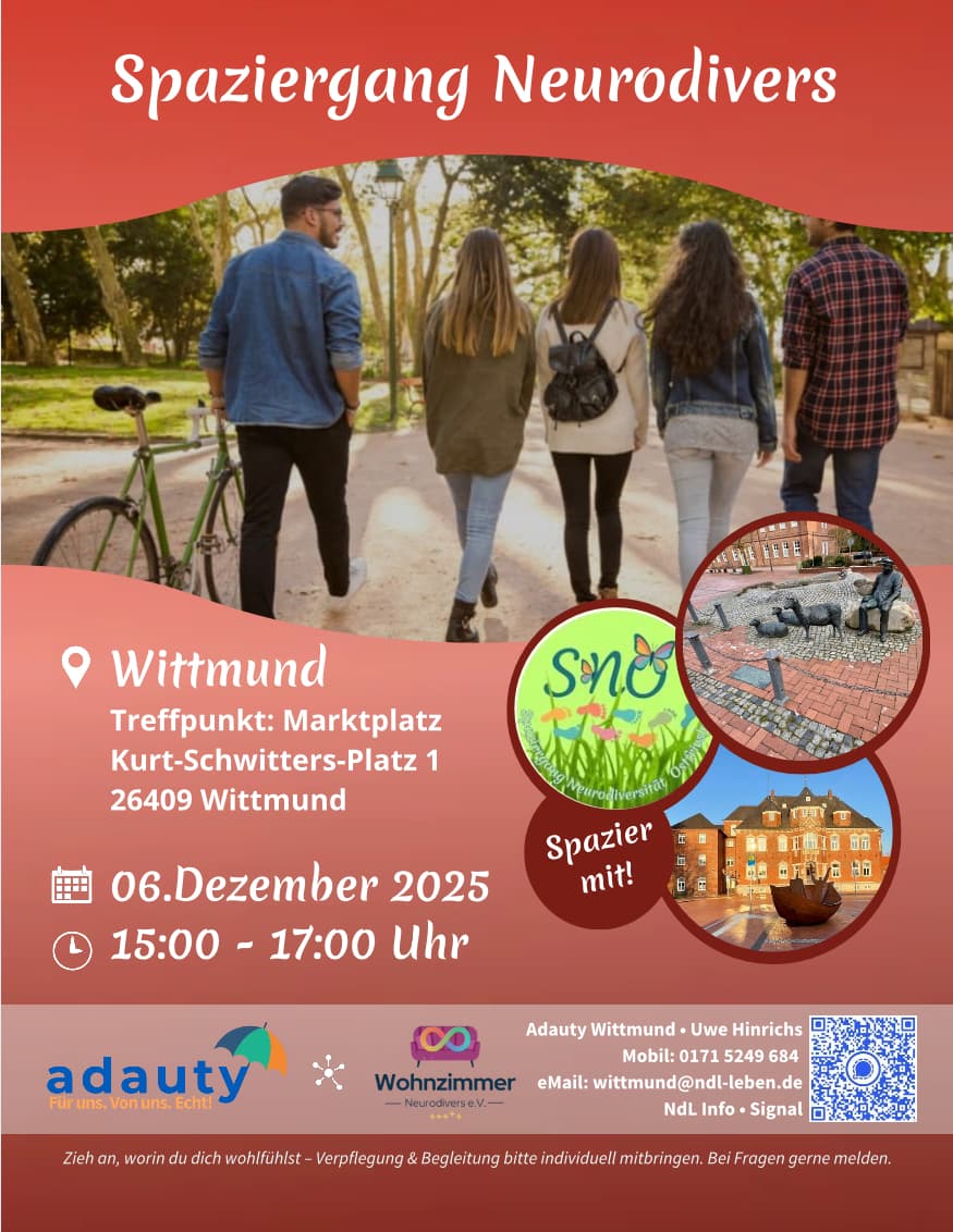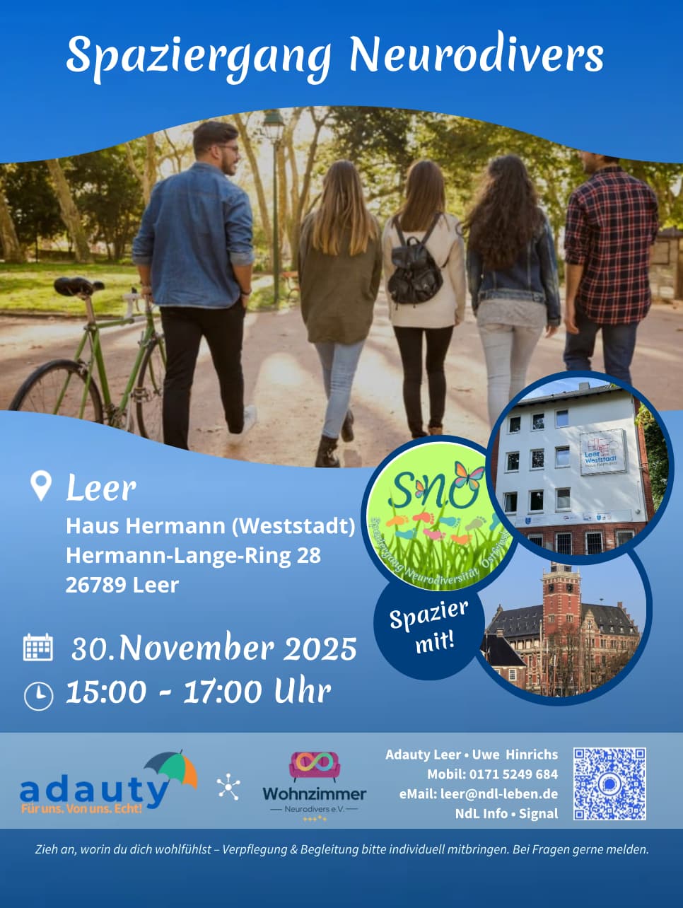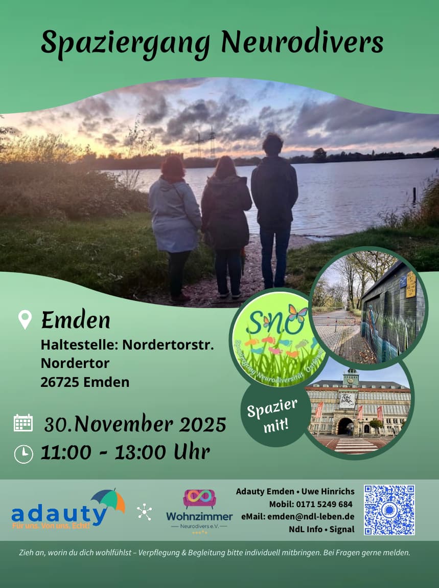 Der „Spaziergang Neurodivers“ lädt Menschen in Ostfriesland dazu ein, sich in entspannter Atmosphäre auszutauschen, Verbundenheit zu erleben und Gemeinschaft zu spüren.