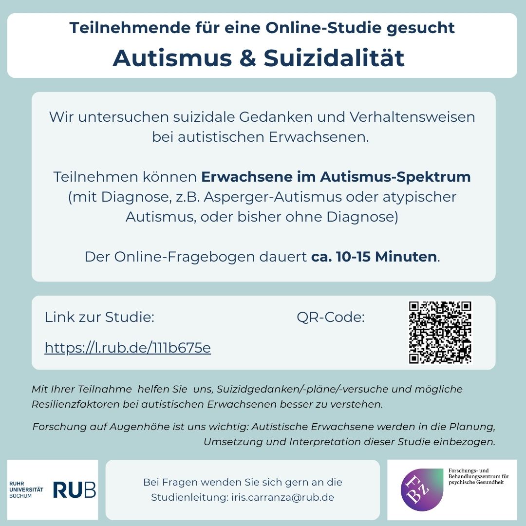 An der Ruhr-Universität Bochum läuft aktuell eine wissenschaftliche Studie zur Suizidalität bei autistischen Erwachsenen unter der Leitung von Prof. Dr. Tobias Teismann.