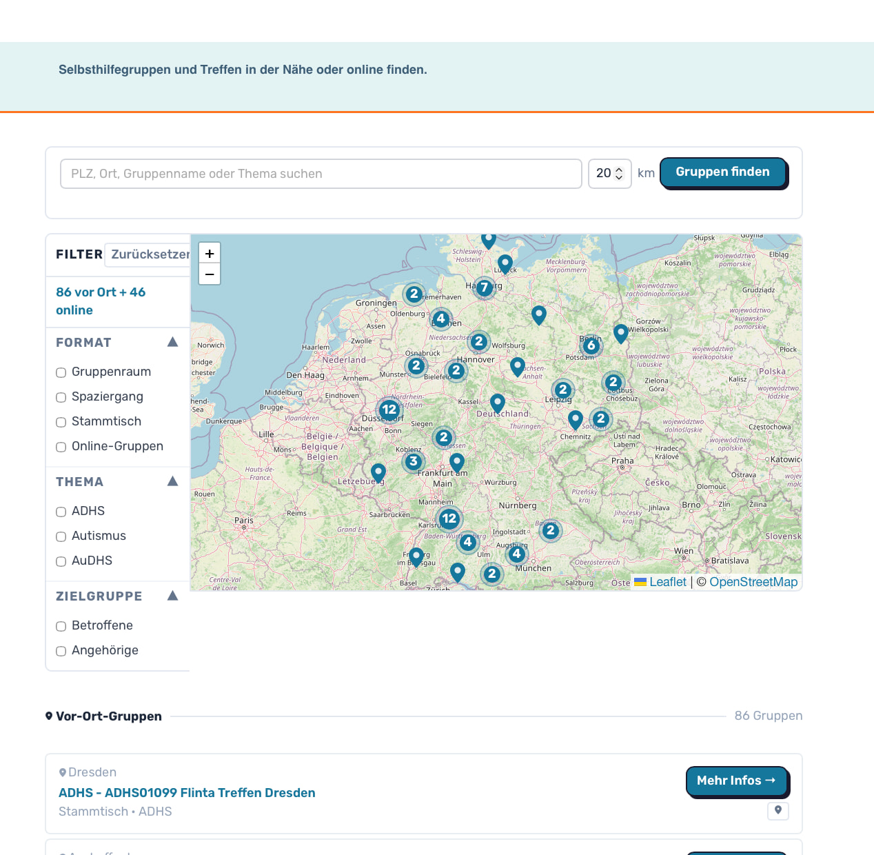 Es gibt online Gruppen und lokale Gruppen, welche hier eine eigene Gruppe für einen geschützen Austausch auf der Plattform haben.